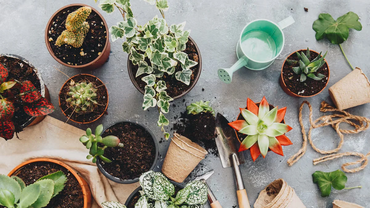 ابزارها و مواد لازم برای تعویض گلدان