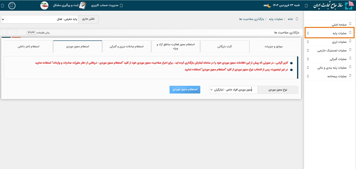 2. دریافت نقش مجوز موردی ـ ایثارگر