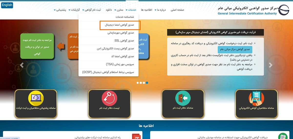 3. اخذ توکن گواهی امضای الکترونیک از طریق وبسایت www.gica.ir