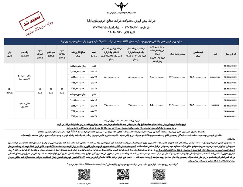 طرح تا اطلاع ثانوی برقرار است و امکان ثبتنام مستقیم از طریق صفحه فروش وبسایت صنایع خودروسازی ایلیا فراهم شده است.
