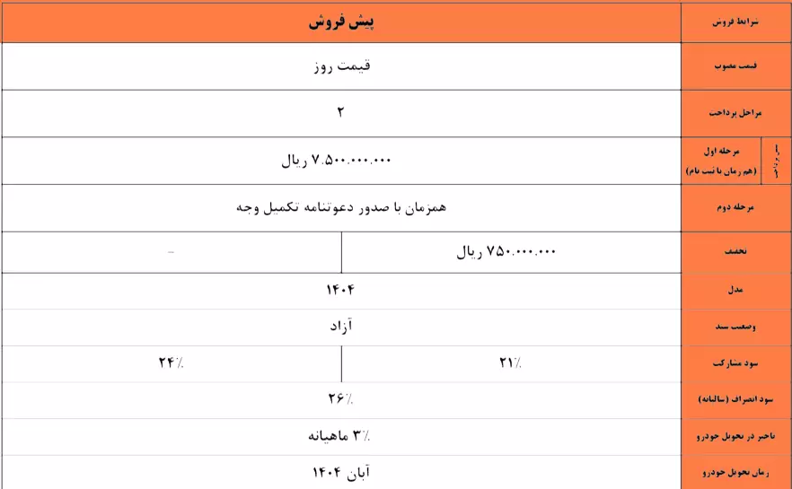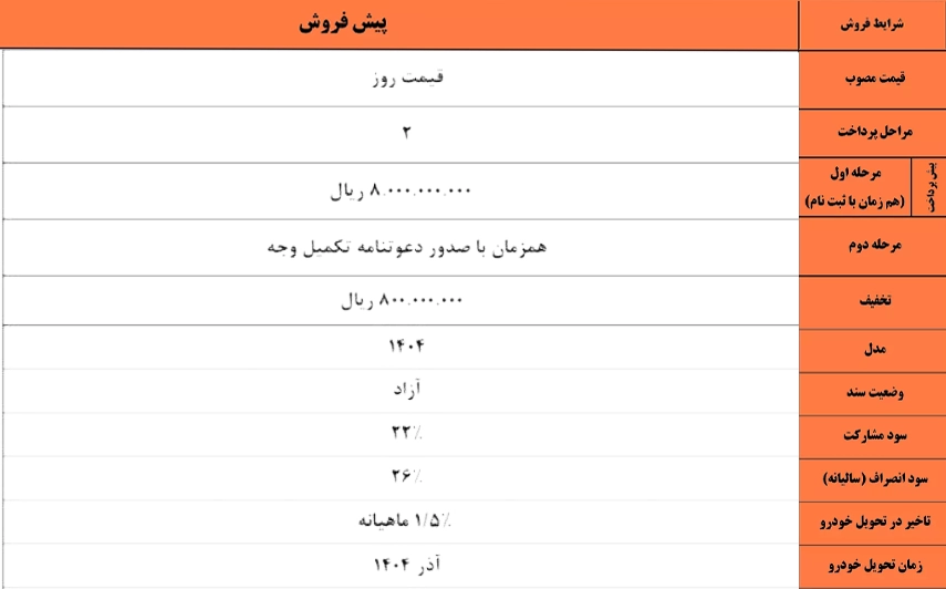 زمان تحویل خودرو در اسفند ۱۴۰۴ تعیین شده است.
