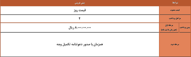 در مرحله نخست، متقاضیان باید مبلغ ۸۵۰ میلیون تومان را به‌عنوان پیش‌پرداخت به حساب شرکت واریز کنند.