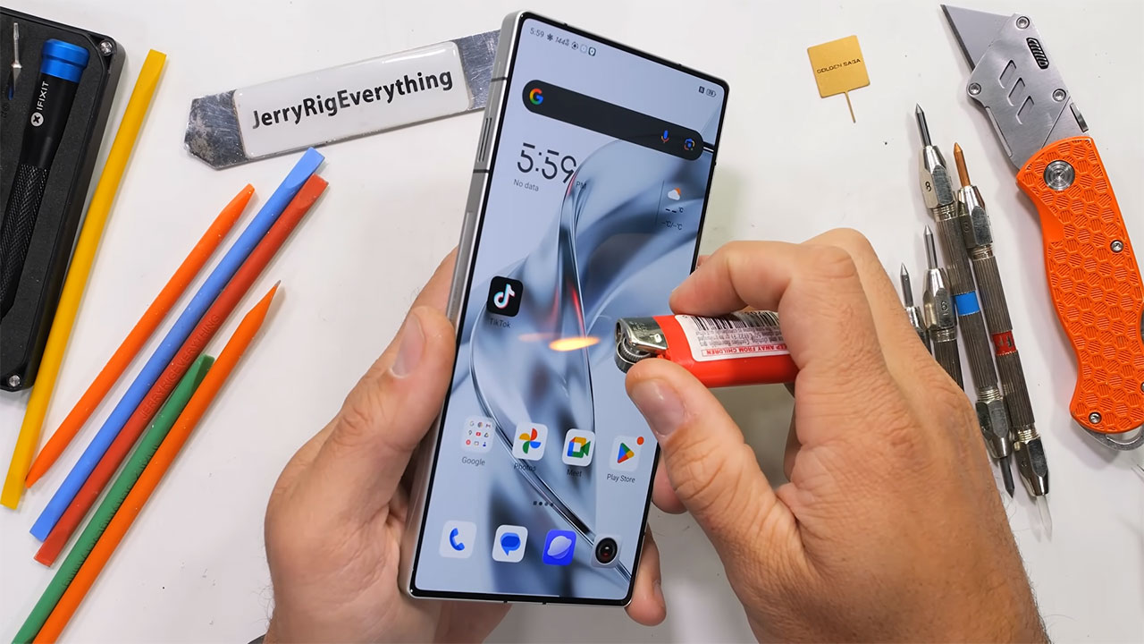 و بالاخره، تست خم شدن. صنعت eSports الان حدود ۲ میلیارد دلار ارزش داره، پس ریج کوییت (rage quit) یا همون عصبانی شدن و کوبیدن وسایل وقتی پول وسطه، یه کم سنگین‌تر می‌شه. ولی برای اونایی که یاد نگرفتن چطور احساسات شدیدشون رو کنترل کنن، خوبه بدونن که این گوشی می‌تونه از پس پرخاشگری فیزیکی ناشی از باختن به خوبی بربیاد.
