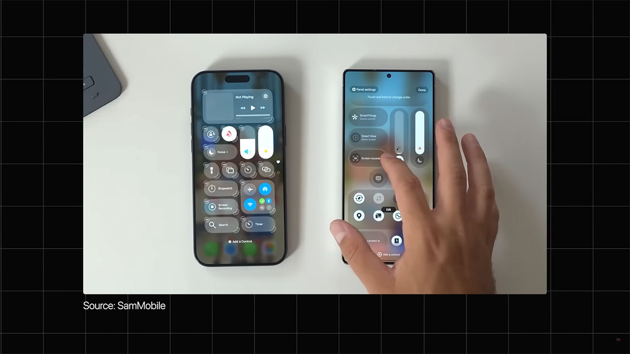 یا اصلا آقای سامسونگ! شما که سالیان سال کنترل سنتر داشتی، اون کنترل سنترت قابل شخصی‌سازی بود، چی شد که اپل اومد روی iOS 18 گفتش: کنترل سنتر شخصی‌سازی کنید. می‌تونی سایزشو کوچیک بزرگ بکنی، اینو ببری بذاری این‌ور، اینو مثلا مربع‌اش بکنی، کشش بدی. شما بعد از اپل اومدی کنترل سنترتو جوری کردی که بتونن مثلا آیکونا رو کوچیک و بزرگ بکنن، جاشونو عوض بکنی، هرجور دوست داشتی بذاری؟