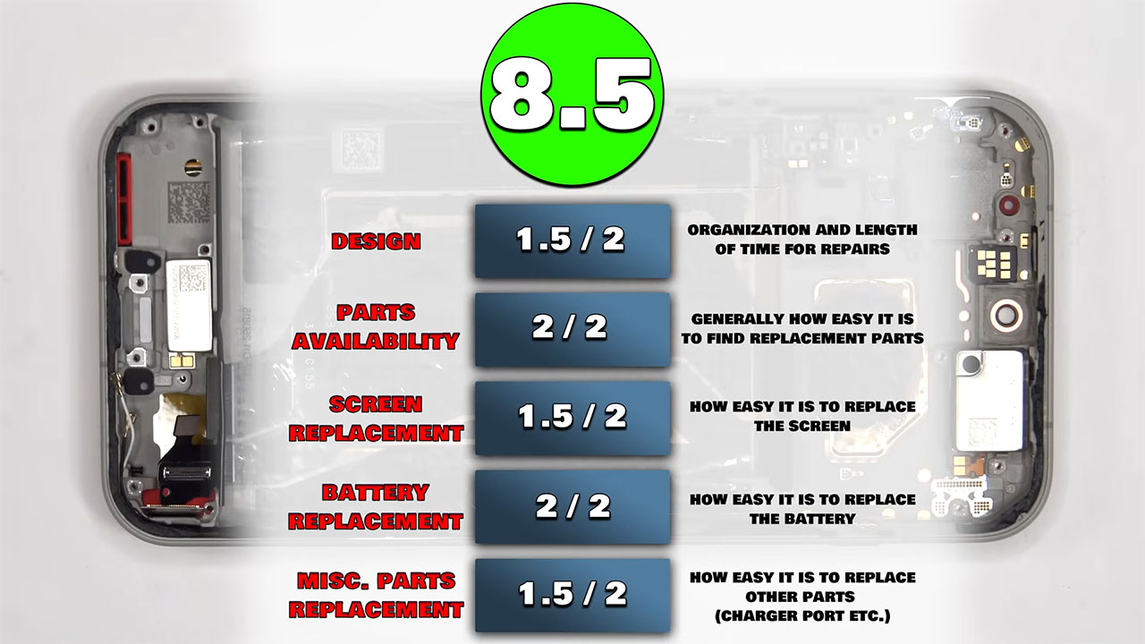 وقتی کابل‌های فلت رو کنار بزنیم، یه نگاه بهتر به اون محفظه بخار (vapor chamber) خیلی بزرگ میندازیم که هم از زیر باتری و هم از زیر مادربرد رد می‌شه. این فلت دکمه پاور و اون یکی هم برای دکمه‌های ولومه. اگه بخواید هر کدوم از اینا رو عوض کنید، باید اون براکت‌های پلاستیکی مشکی رو از تو شیارهای داخل فریم بلند کنید و در بیارید. اگه بخواید خود دکمه‌ها رو هم عوض کنید، باید اون نگهدارنده‌های پلاستیکی مشکی رو بلند کنید و بکشید بیرون تا دکمه‌ها آزاد بشن و در بیان. همین قضیه برای دکمه اون طرف هم صدق می‌کنه. هم اسپیکر و هم برد سنسور مجاورت با چسب نگه داشته شدن، پس اگه خواستید عوضشون کنید، فقط یکم گرما بدید و آروم بلندشون کنید. برای نمره تعمیرپذیری این گوشی، من بهش ۸.۵ از ۱۰ می‌دم. خب، حالا وقتشه که گوشی رو دوباره سر هم کنیم. وقتی همه‌چی برگشت سر جاش، چسب جدید بزنید و قاب پشتی رو بچسبونید. گوشی رو برگردونید، روشنش کنید و تمام!
