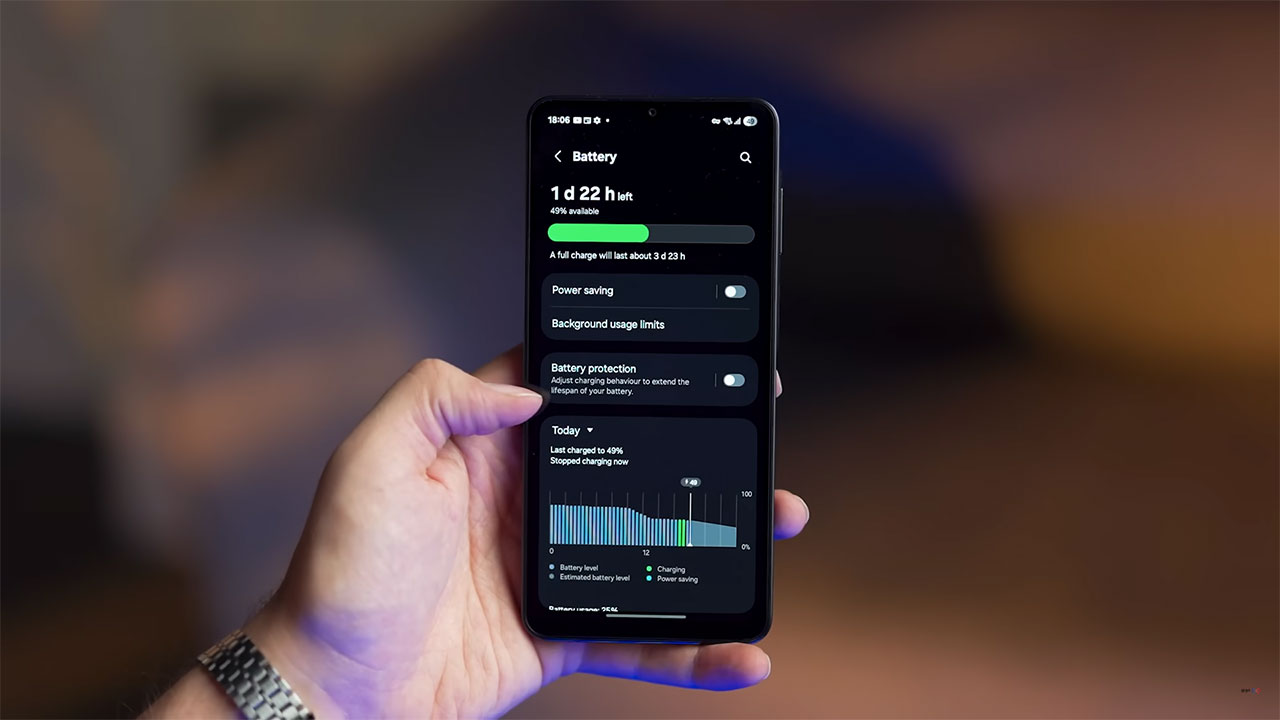 بخش بعدی بخش باتریه؛ جایی که ۵۰۰۰ میلی آمپر ساعت ظرفیت باتریه، ۲۵ وات هم میتونه شارژ بشه. عملکردش از نظر شارژدهی یه چیز قابل قبول رو به خوبه. یعنی شما تو استفاده روزمره، اگر یه استفاده معمولی داشته باشید، یه روز کامل بهتون شارژ میده. یک ساعت کالاف دیوتی، حول و حوش ۱۳ ۱۴ درصد شارژشو کم میکنه. یه سری جاها بهینه نیست، یه سری جاها بهینهست. بسته به استفاده میتونید ازش شارژدهی خوب تحویل بگیرید. شارژ شدنشم با آداپتور ۲۵ واتی که تو باکسش نیست و باید جدا بگیرید! با یه آداپتور ۲۵ واتی شارژش بکنید، تقریبا ۱ ساعت و ۲۰، ۱ ساعت و ۲۵ اینطورا طول میکشه کامل شارژ بشه. پکیج باتریشم پکیج قابل قبولیه.
