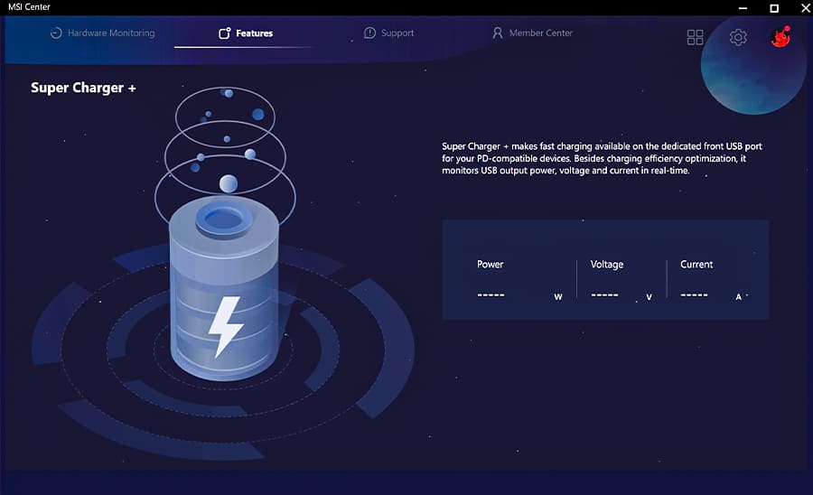 بخشی بعدی اپلیکیشن MSI Center که در اغلب لپتاپها و سختافزارهای نسل جدید کاربرد دارد، Super Charger نامگذاری شده است.