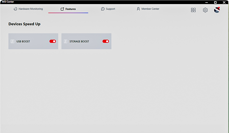 در مرحله بعد به بخش قابلیتها (Features) میرسیم که در واقع هسته عملکردی نرمافزار MSI Center محسوب میشود. این بخش در واقع جاییست که نرم افزار مدیریت MSI Center از حالت پایش و کنترل پایه، وارد لایه افزونهها و ماژولهای پیشرفته میشود.