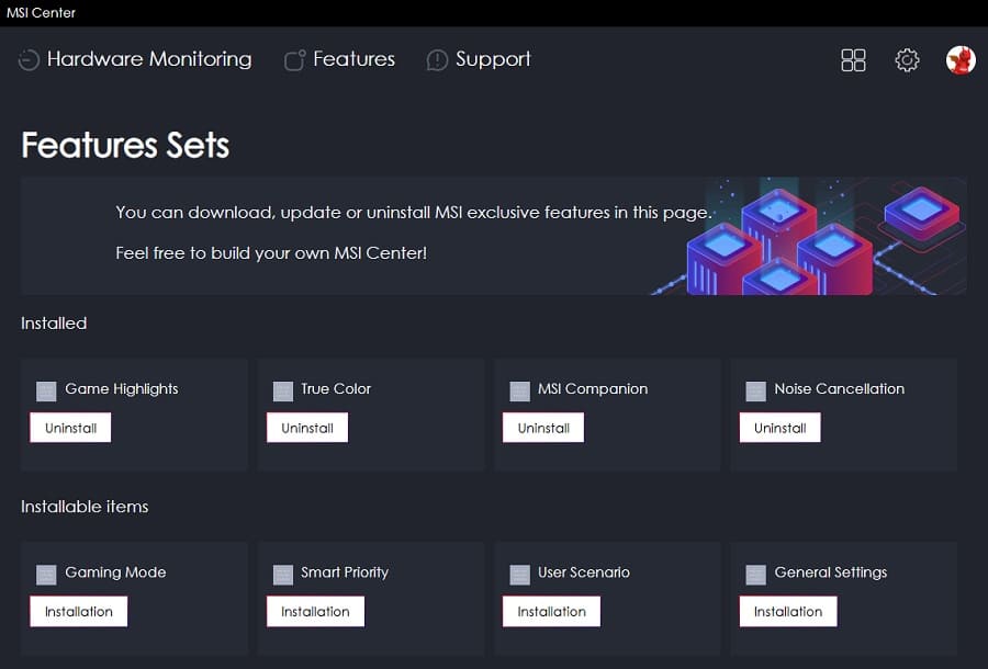 MSI برای جلوگیری از سنگین شدن برنامه و ارائه تجربه یکپارچه، بسیاری از قابلیتها را بهصورت ماژولار عرضه کرده تا فقط در صورت نیاز نصب و فعال شوند.