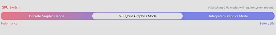 به عنوان مثال، در حالت عادی میتوان از گرافیک مجتمع جهت حفظ انرژی استفاده کرد، اما هنگام اجرای نرمافزارهای سهبعدی یا بازی، فوراً به GPU اصلی سوئیچ نمود. افزون بر این دو حالت، تنظیم Hybrid Mode وجود دارد که به هوش مصنوعی یا خود سیستم عامل اجازه میدهد بسته به سطح بار کاری، به صورت پویا بین دو GPU سوئیچ کند تا کارایی و مصرف توان همیشه متعادل باقی بماند.
