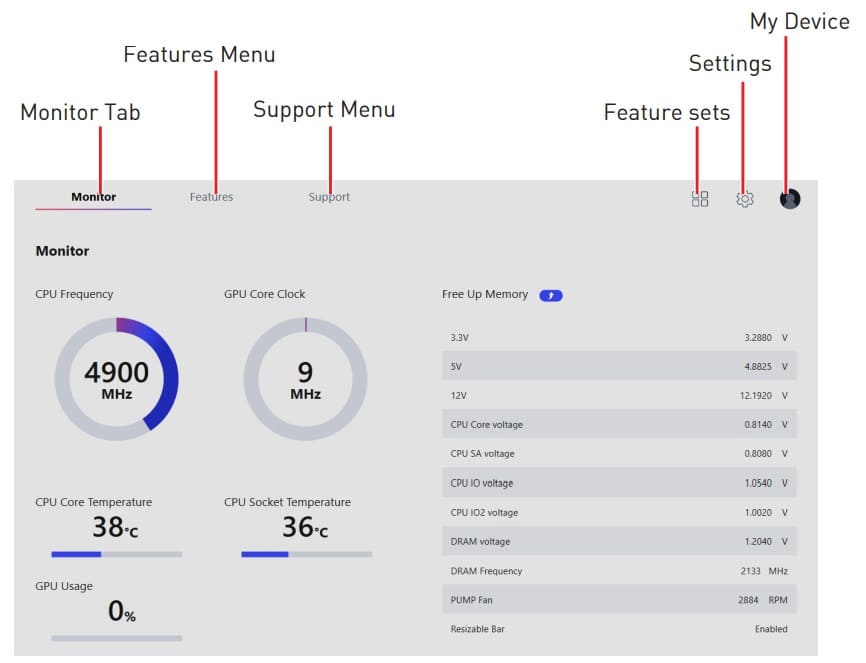در بخش Feature تمام قابلیتهای این اپلیکیشن چندمنظوره از مدیریت عملکرد تا هوش مصنوعی و بهینهسازی گیمینگ، در قالب ماژولهای مستقل در آن تجمیع شدهاند. البته این بخش در زمان راهاندازی اولیه ممکن است تنها شامل چند قابلیت پایه بوده و اغلب قابلیتهای آن همچنان فعال نباشند.