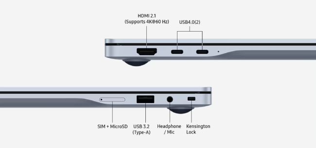 گزینههای ارتباطی شامل شبکه 5G Sub6 در کنار Wi-Fi 7 و Bluetooth 5.4 بوده و روی بدنه لپ تاپ یک پورت USB 4.0، یک پورت USB 3.2 Type-A، خروجی HDMI 2.1 و جک صوتی 3.5 میلیمتری صدا قرار گرفته است.