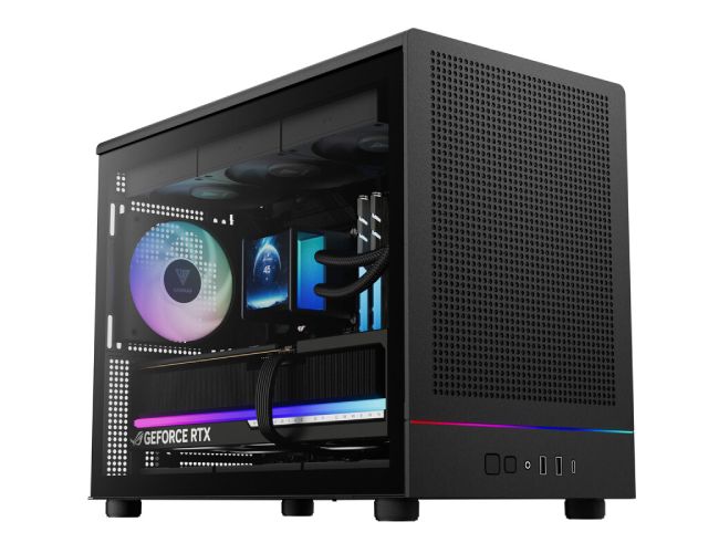 روی پنل جلویی پورت USB 3.2 Gen 2 Type-C با سرعت 10Gbps در کنار دو پورت USB 3.0، کلید کنترل نورپردازی و جک هدفون قرار گرفته است. با وجود طراحی کوچک، این کیس از مادربردهای micro-ATX و Mini-ITX پشتیبانی میکند و توان نصب دو رادیاتور 360 میلیمتری در بالا و پایین را دارد.