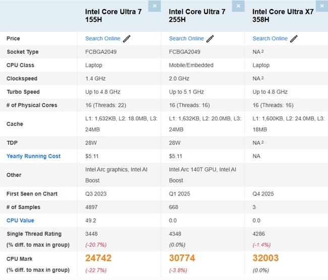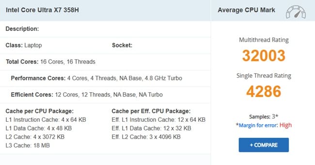 بهبود عملکرد Core Ultra X7 358H در بنچمارک PassMark؛ پیشی گرفتن جزئی از نسل قبل