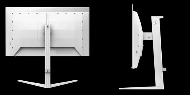 پایه این مانیتور از تنظیم ارتفاع 130 میلیمتری پشتیبانی میکند و امکان چرخش عمودی (Pivot)، چرخش افقی (Swivel) و زاویهدهی (Tilt) را فراهم میکند. همچنین پشتیبانی از VESA 100x100 برای اتصال این مانیتور به جک رومیزی یا دیواری وجود دارد.