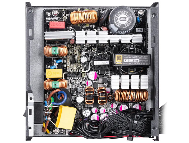 خازنهای SAMXON تایوانی ۱۰۵C با مقاومت بالا در برابر ریپل و طول عمر طولانی، قلب پاور را تشکیل میدهند. هیتسینکهای نسل جدید حرارت تولید شده توسط ماسفتها را با راندمان بالا به PCB منتقل کرده و با جریان هوای فن دفع میکنند، که حتی در دمای محیط 40°C، توان نامی پاور بدون افت ارائه میشود.