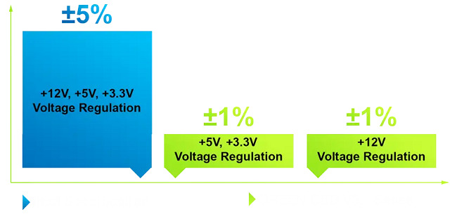 - رگولاسیون ولتاژ کمتر از ۱ درصد و ریپل زیر ۳۰ میلیولت، جریان تمیز و پایدار را به کارت گرافیک و پردازنده منتقل میکند، که علاوه بر عملکرد بهتر، طول عمر قطعات را نیز افزایش میدهد.