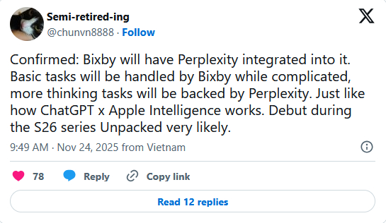 طبق گزارش افشاگر شناختهشده «Semi-retired-ing»، سامسونگ قصد دارد از Perplexity AI بهعنوان موتور پردازشگر جدید برای بخش هوش مصنوعی مولد Bixby استفاده کند؛ اقدامی که عملاً Bixby را وارد سطح جدیدی از تعاملات هوشمند خواهد کرد.
